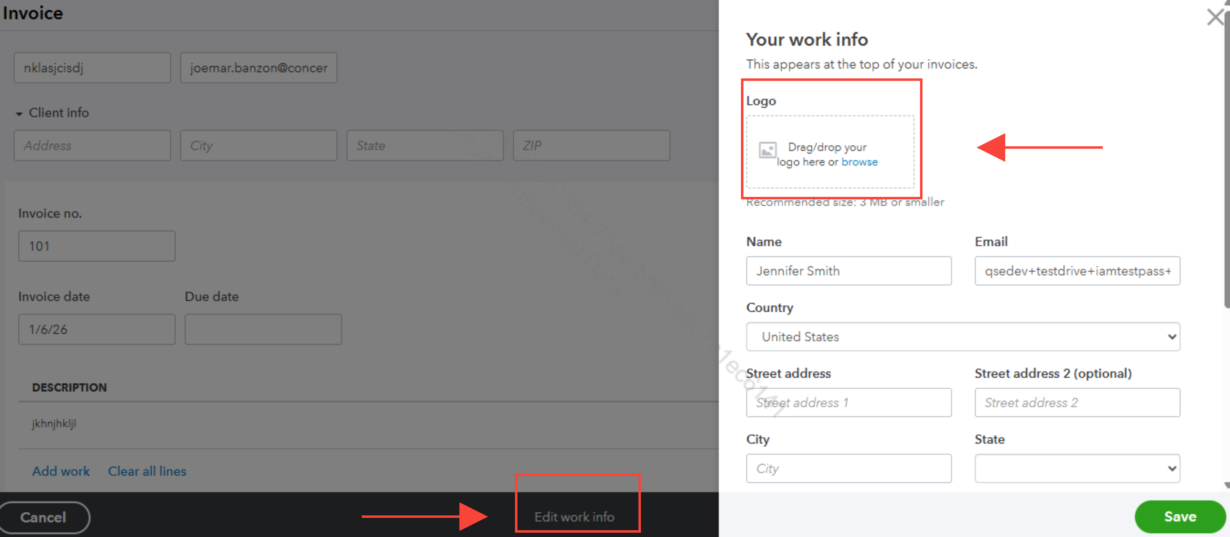 4. At the center bottom, click on Edit work info, then hit on the Logo box.
