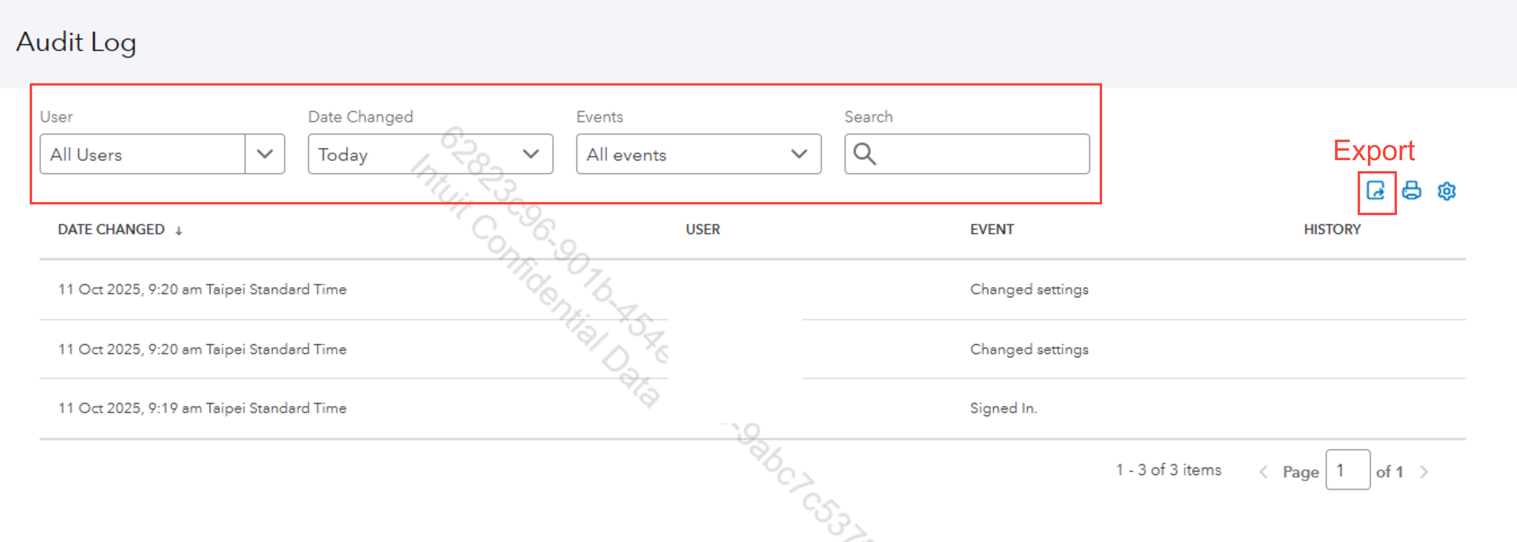 To collect your audit log from QuickBooks Online, you can use the manual export option available in the Audit Log.