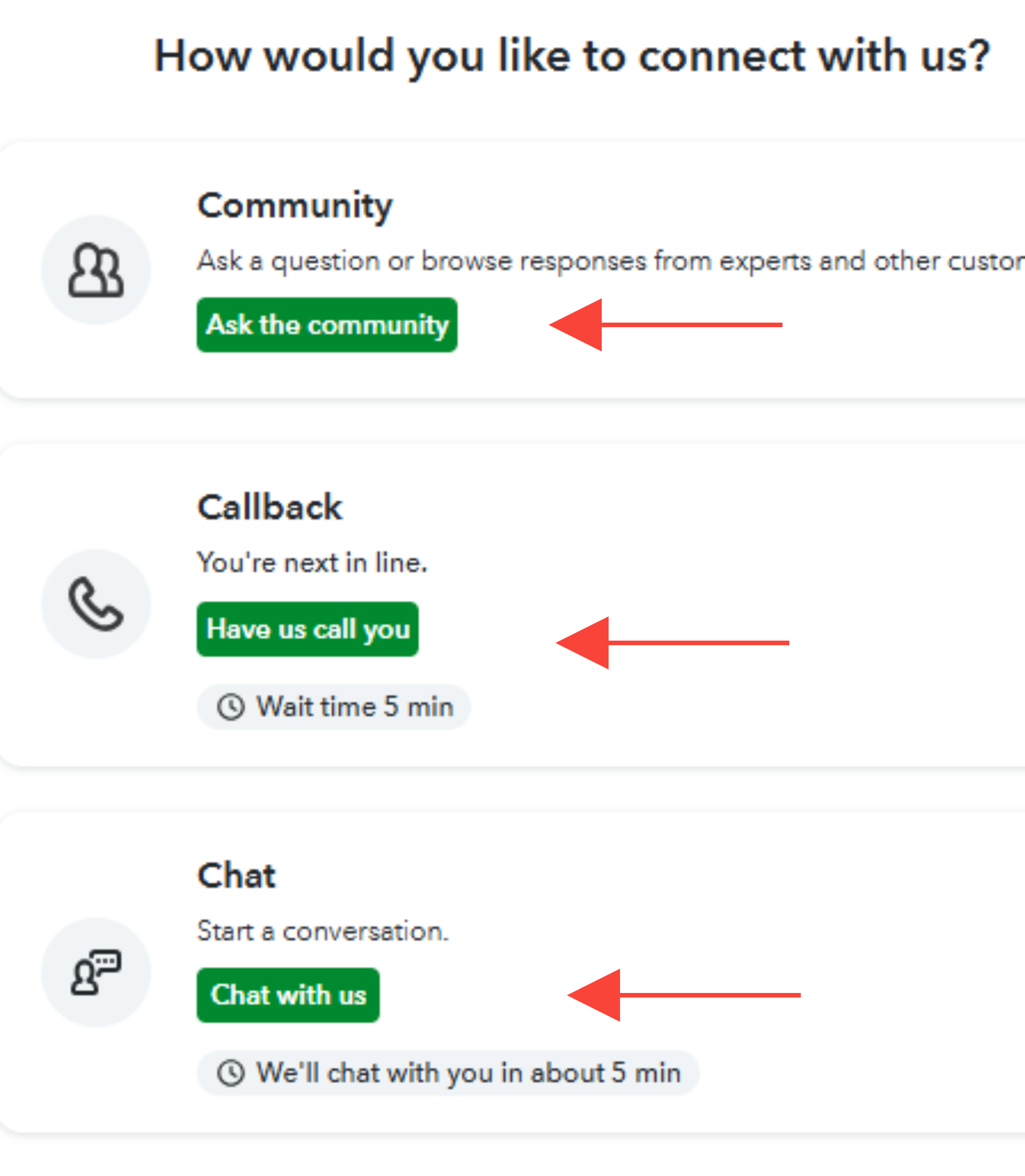 - Choose the option on how you would like to connect with us.