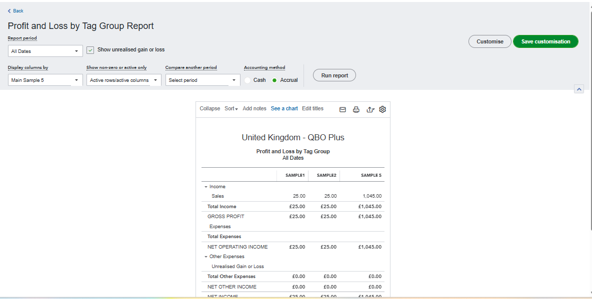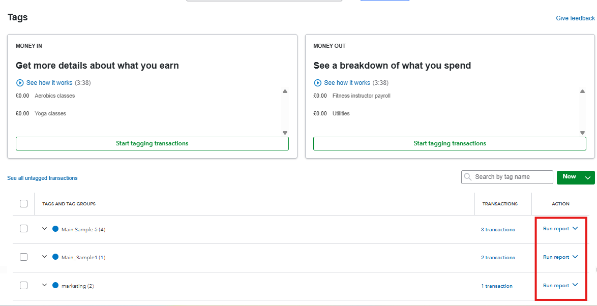 - In the Action column, click Run report next to the tag you want to view.