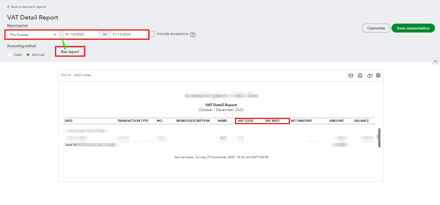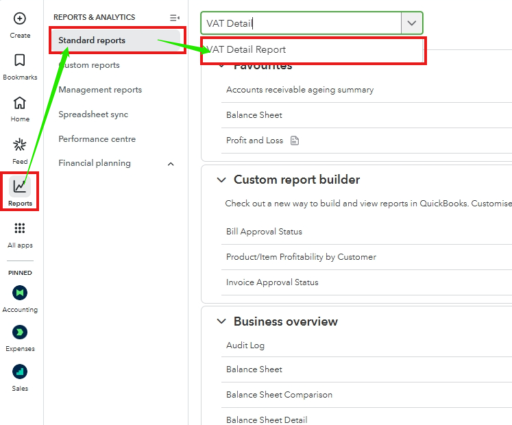 Please note that QuickBooks Online (QBO) has a report specifically designed to provide detailed tax information for VAT purposes. Let's pull up the VAT Detail Report.