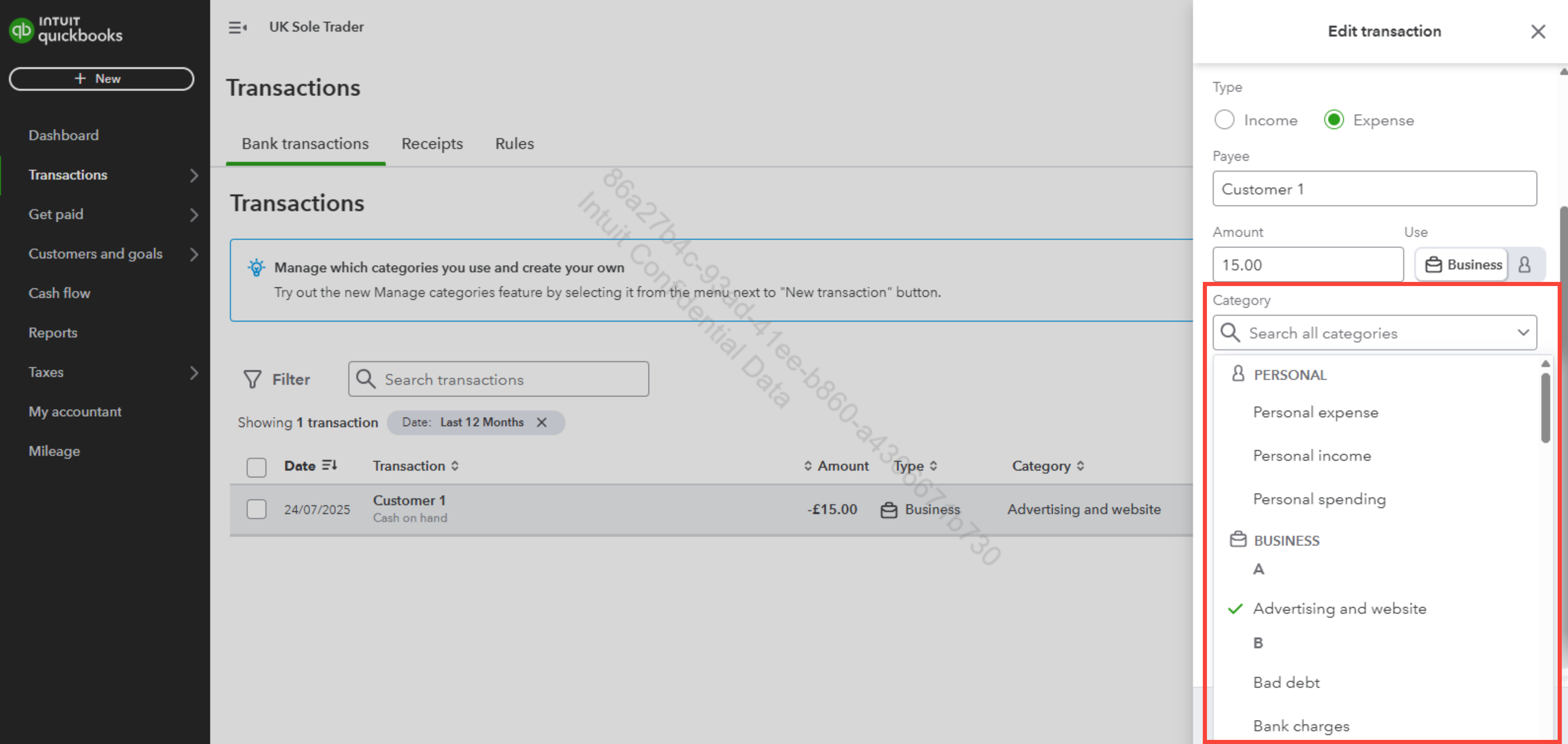 However, if you're referring to changing category names, please know that this version of QuickBooks that you have uses a preset list of categories that are already align with HMRC requirements for UK sole traders. You can only modify transaction categories, but this is limited for those categories that were manually added.