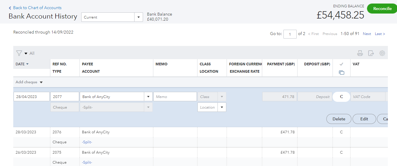 - Click the transaction, then select Edit. The entry screen for that particular transaction opens.