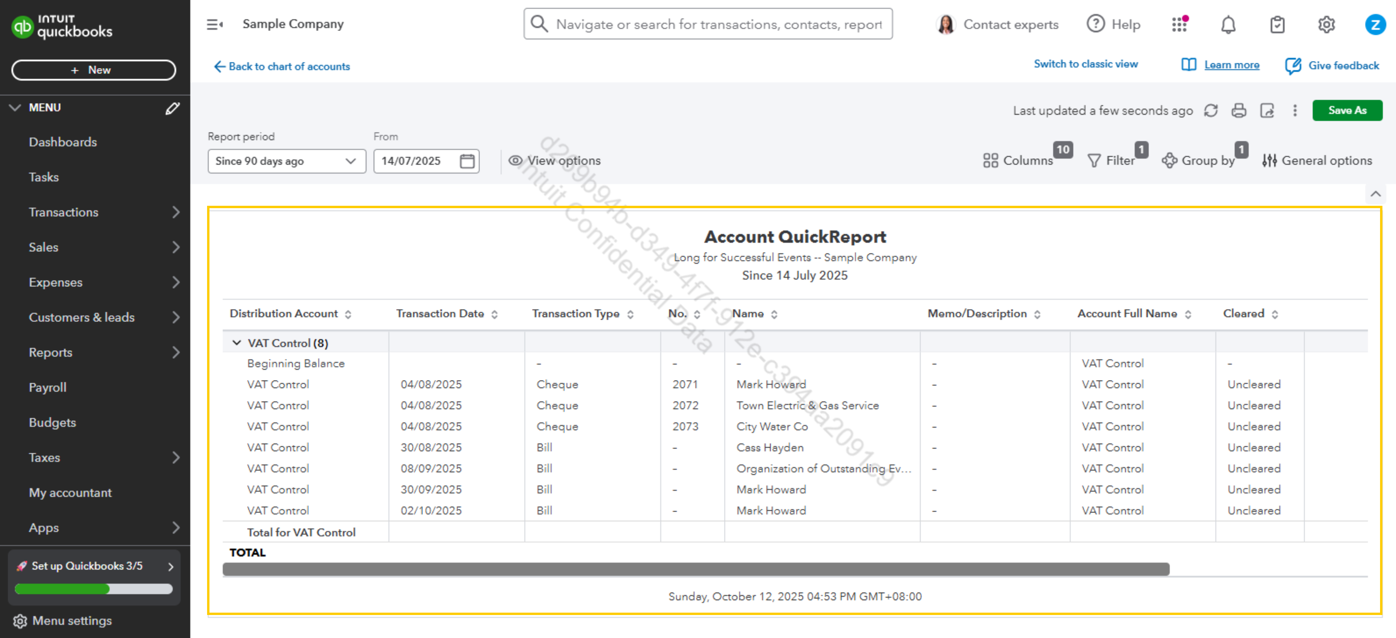 - Thereafter, select Run report next to the VAT Control account.