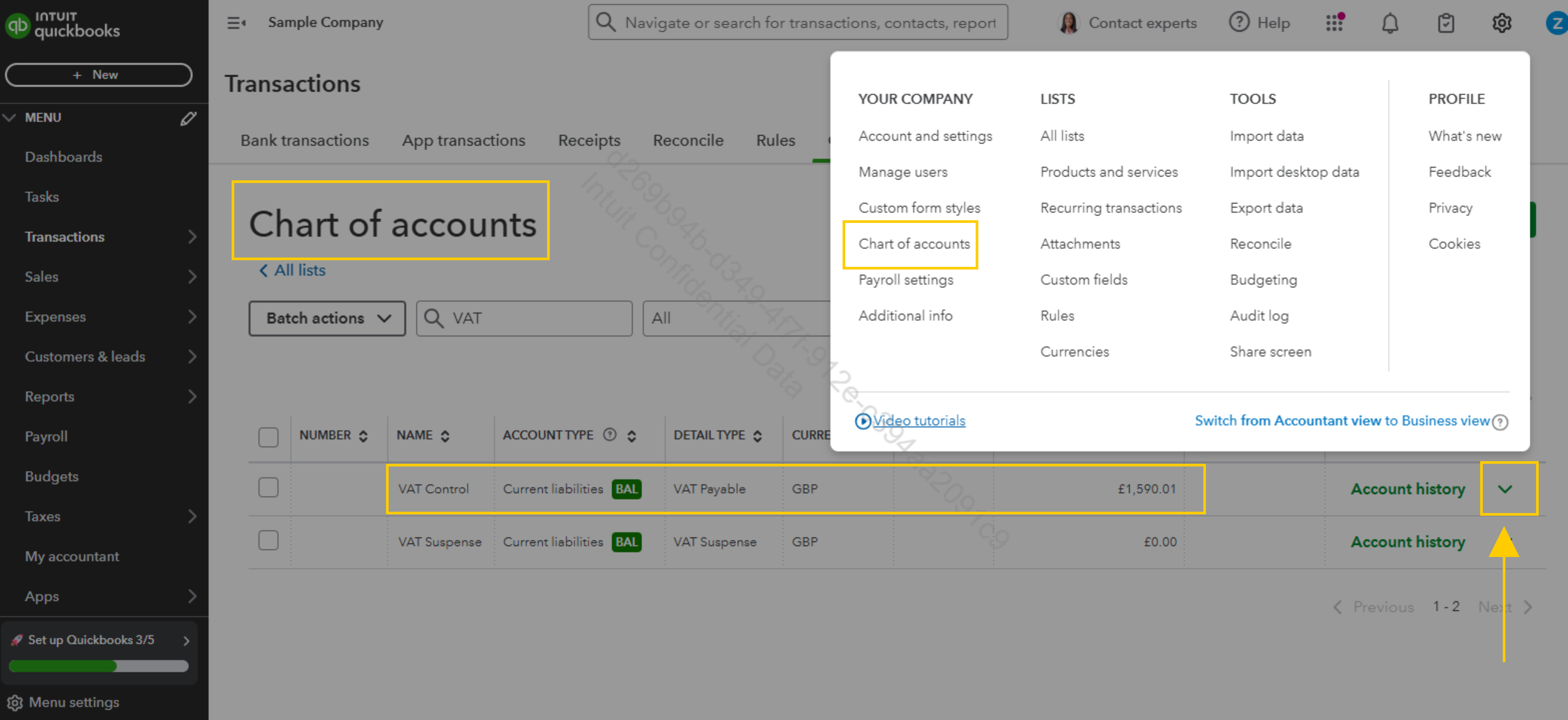 - Then, locate the VAT Control account (this is the liability account QuickBooks uses for your VAT).