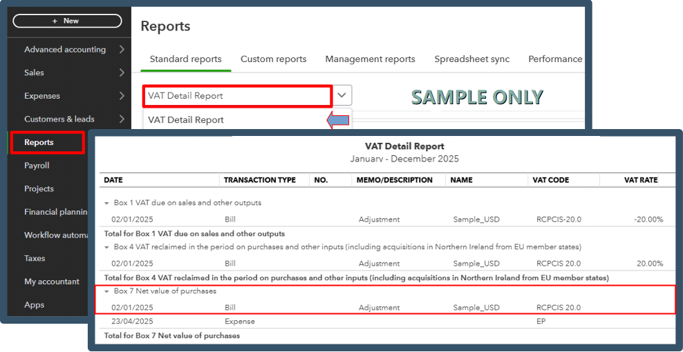 To review your adjustments, we can run the VAT Detail Report by following these steps: