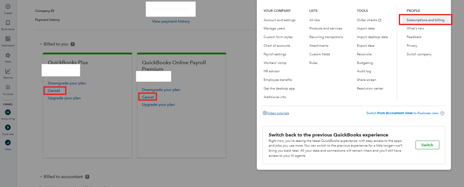 Here’s how to cancel through the QBO account: