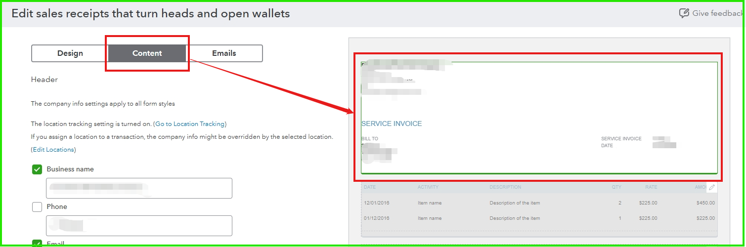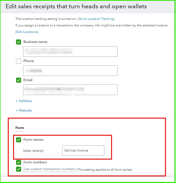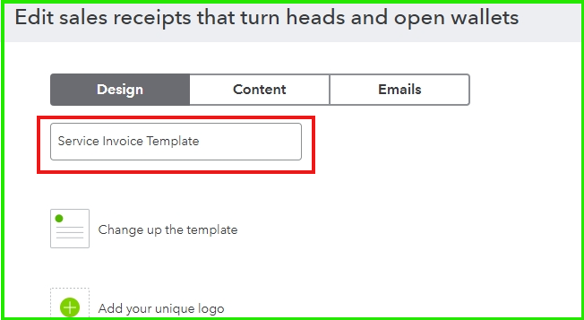 Please note that if you create a template to rename the form from Sales Receipt to Service Invoice, the changes will only appear when printing or emailing the receipt.