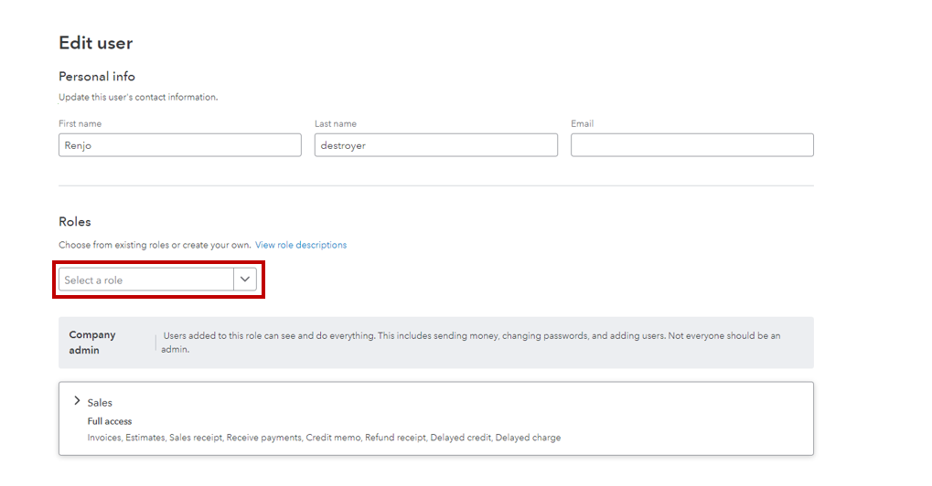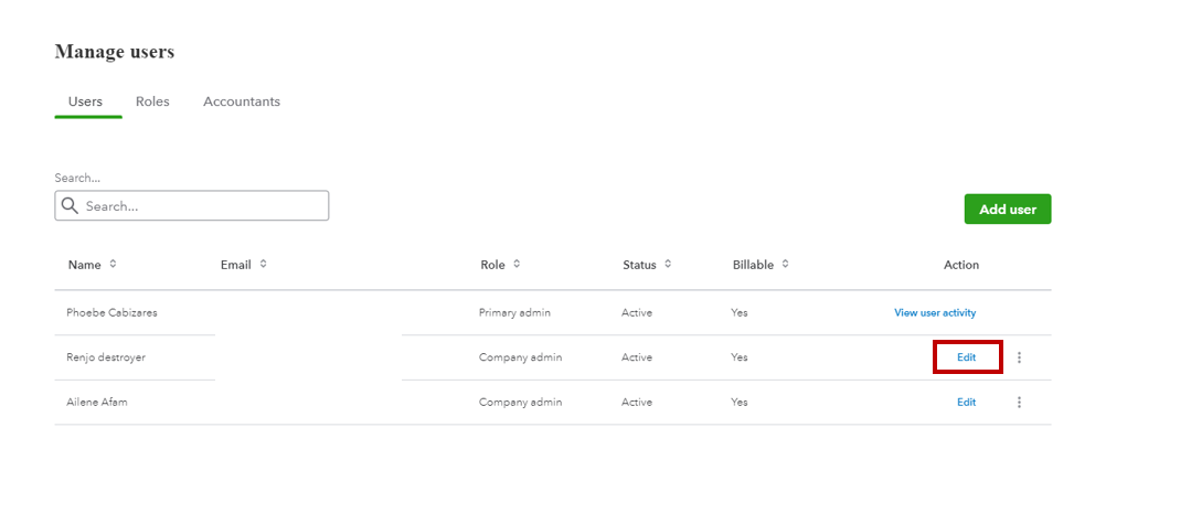 In addition to the admin role, you may also find more tips while managing your standard or other users from this link: Add and manage users in QuickBooks Online.