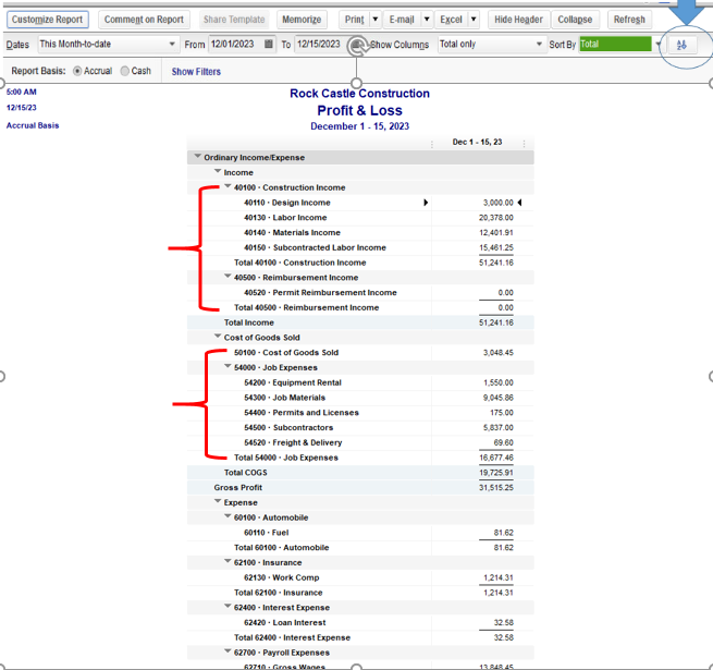 QuickBooks re-sorts lists based on the first three digits of the account number. You can always sort the account number on your Financial reports. Just click on the arrow-down beside the Sort By field.