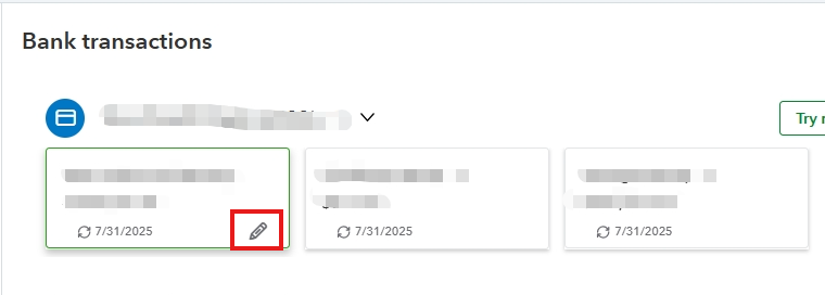 - Choose the bank account, then click the pencil icon.