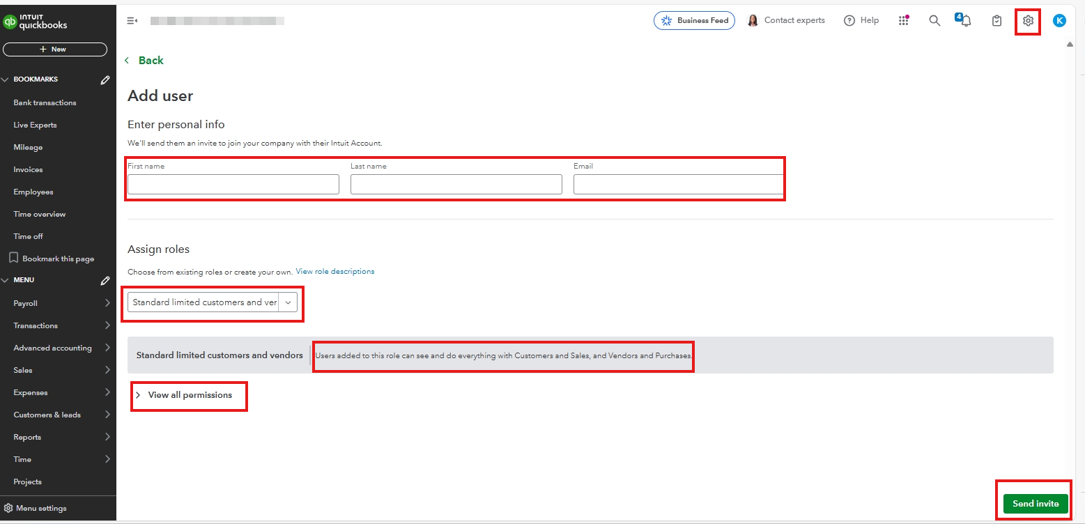 If you're using QBO Advance, you can create custom roles to give users access only to what they need for their work.
