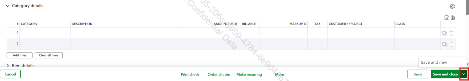 To save time and avoid reopening the "Write Checks" window for each entry, use Save and new instead of Save and close when entering multiple checks written outside of QuickBooks.