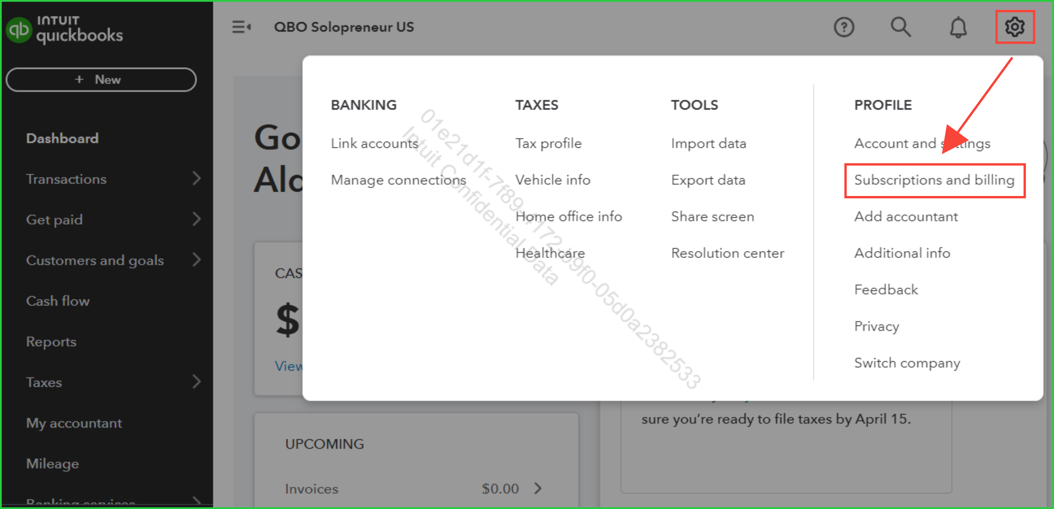If needed, you can update your payment method at any time by navigating to the Subscriptions & billing section under the Gear icon on your QuickBooks dashboard.