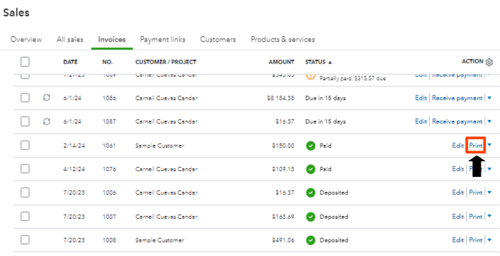 To learn more about printing sales forms, please see this article: Email or print multiple sales forms in QuickBooks Online.