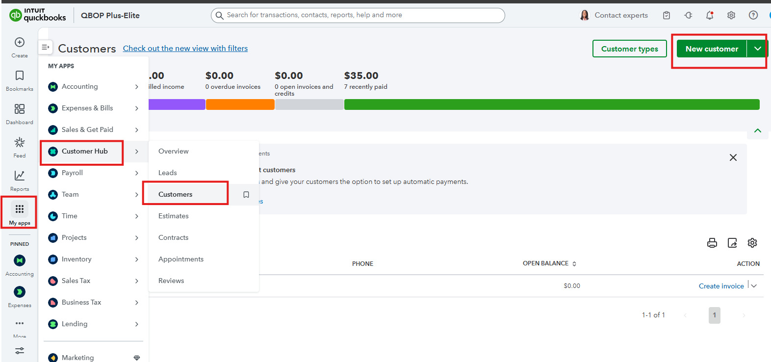 - Choose Customer Hub and select Customers.