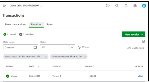 If you have any more concerns related to linking receipts in QuickBooks Solopreneur, please add them in the comments. We're always available in the Community to assist you.