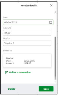 When linking your receipt to a transaction, please ensure that the details on the receipts exactly match those of the transactions. This includes verifying that the amount and the date are the same and confirming whether the transaction is categorized as an expense or income. Ensuring these details are precisely aligned is essential for successful linking. I've attached screenshots for your visual reference: