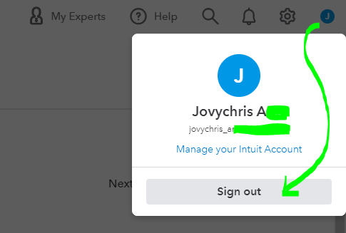 From there, you can identify the details with your correct QBO account. If the information doesn't match, you can log out by clicking the Letter beside the Gear icon on the upper right and choose to Sign out. Then log back in with the correct credentials.
