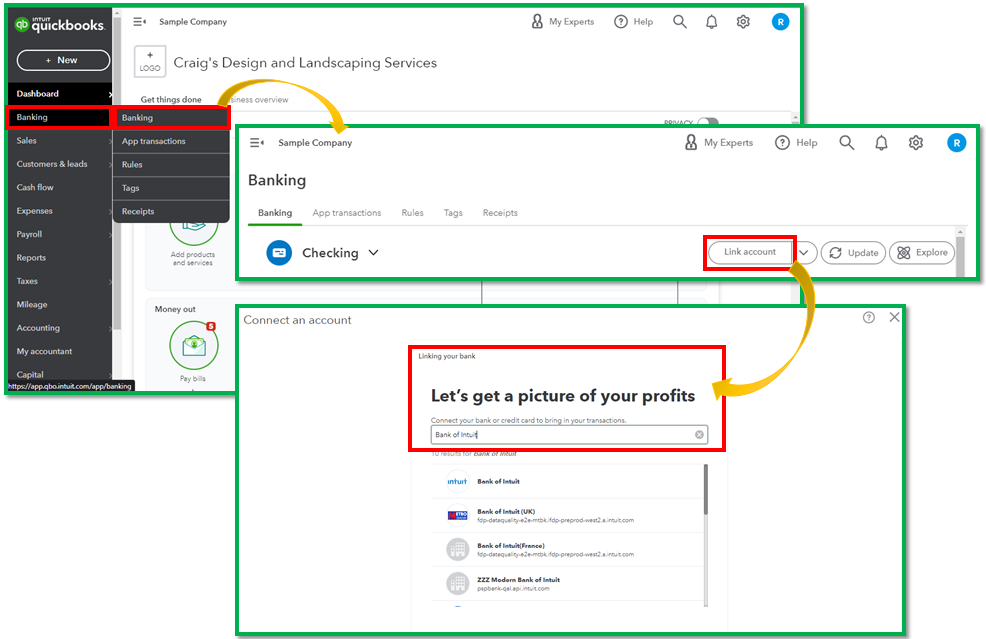 To start with, the option to connect both parent and sub-accounts is unavailable. Since the transactions are not going through to your QBO Company, we can disconnect your parent account and connect all your sub-accounts. This way, transactions from there will be added to your banking tab to be matched and categorized.