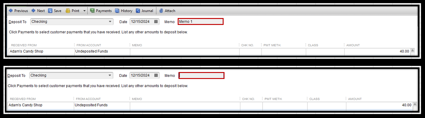 You can also repeat the process to modify the Memo field of your old deposits.