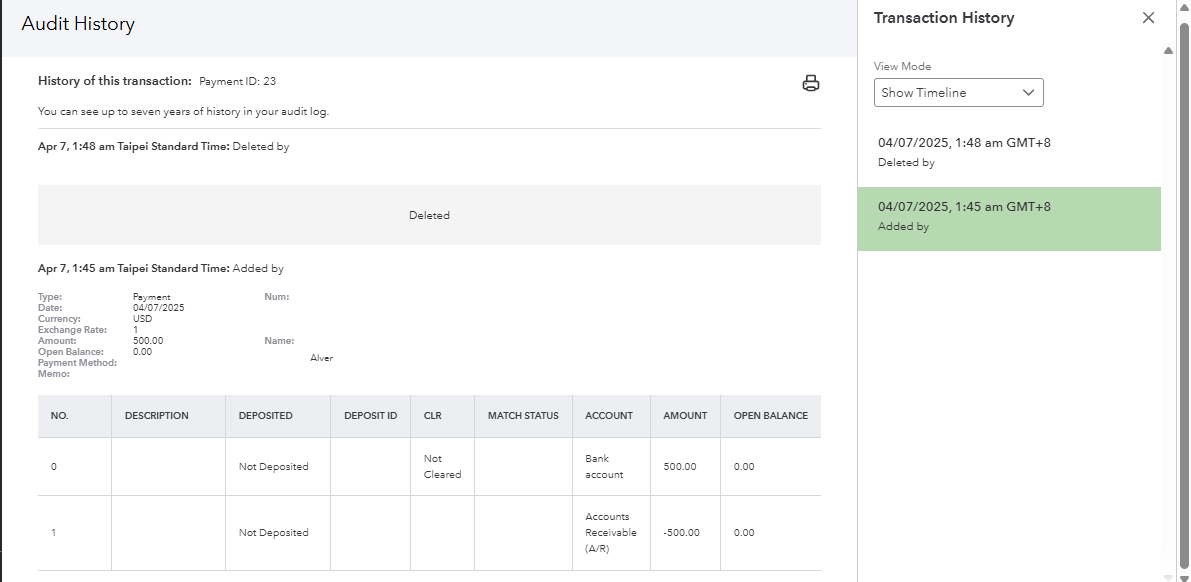 - Look for the deleted bank deposit.