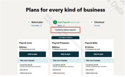 - Skip add-ons: If payroll services are not essential for your business, you can opt to proceed without adding them.