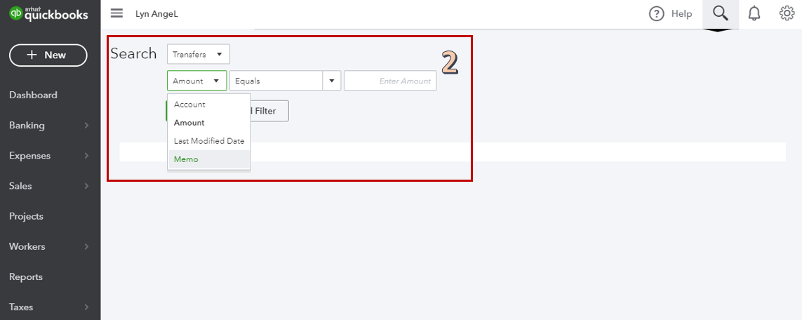 2. Filter the search to Transfer by clicking on the drop-down arrow beside Search and selecting Transfers, make the rest of the filters, then click on the Search button.