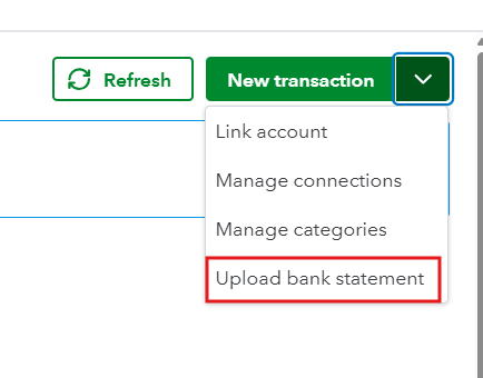 Please be aware that there's no option to add a credit card account manually in QuickBooks Solopreneur. However, you can add transactions or charges manually or upload a bank statement from your credit card account.