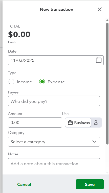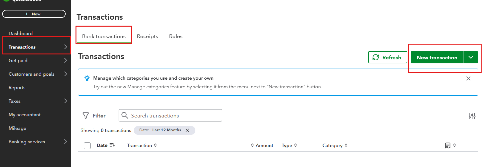 Let's manually add your transactions or charges in QuickBooks Solopreneur, Fernley. First, I need to ask you a few questions to find the best solution for your needs.
