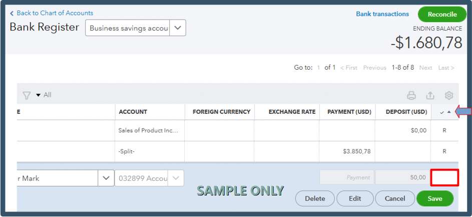 Upon recreating a transaction, it will reappear in your register. Subsequently, you can manually reconcile it by placing R status in the Reconcile (✓) column. The process for doing this is fairly swift and straightforward.