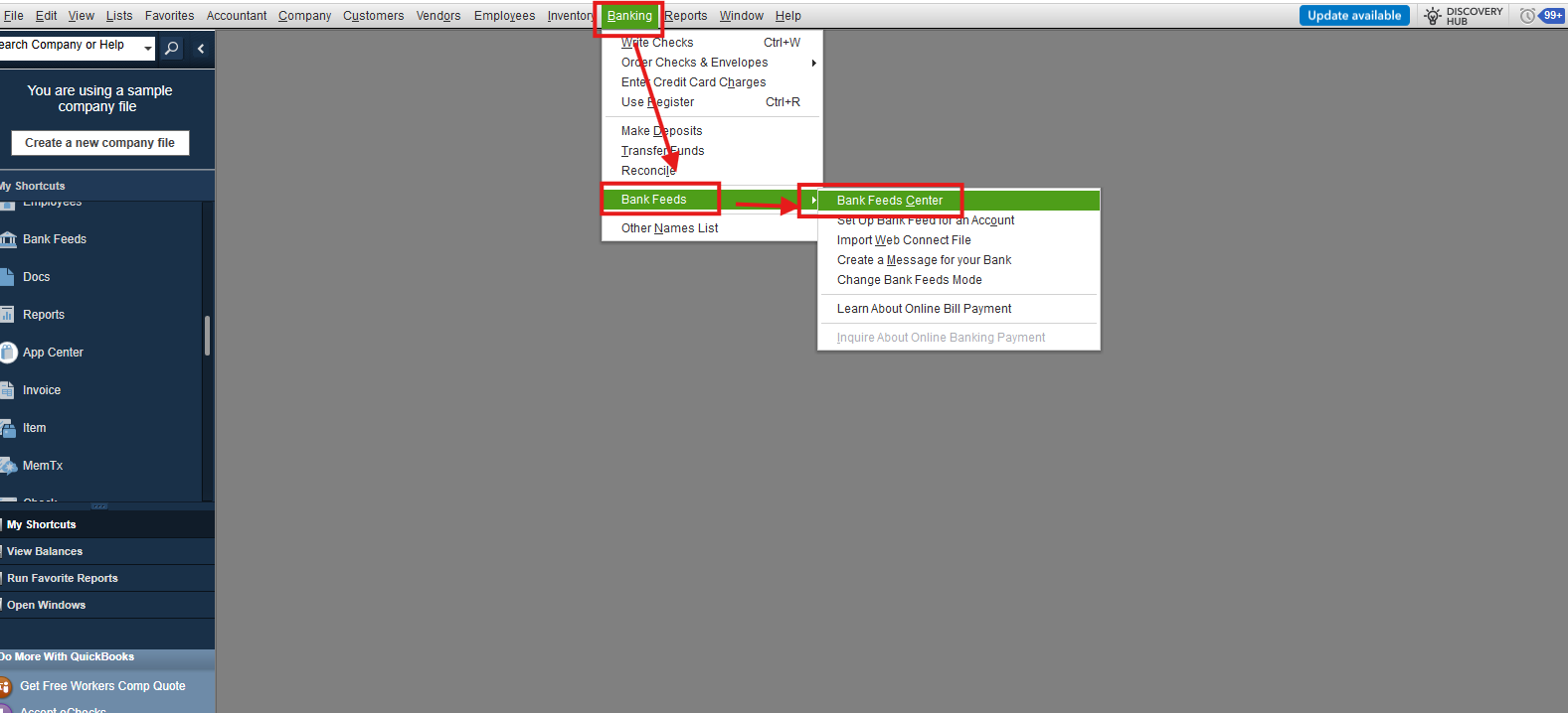 Next, we can check the Bank Feeds to see if these deposits are imported from your bank. Here's how: