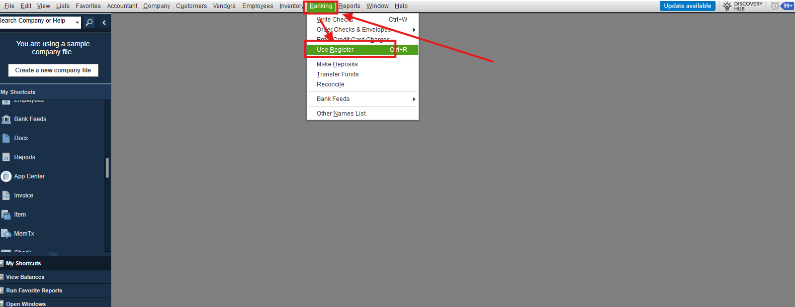 If the deposit isn't showing there, the other deposit might be associated with a different account. You can view your other accounts again by checking the Use Register located in the Banking menu. If you find it in another account, you can edit it to move it to your Checking account.