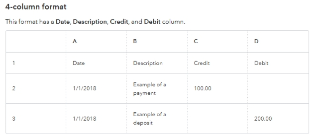 The four-column format includes Date, Description, Credit, and Debit as column headers, shown in the image below: