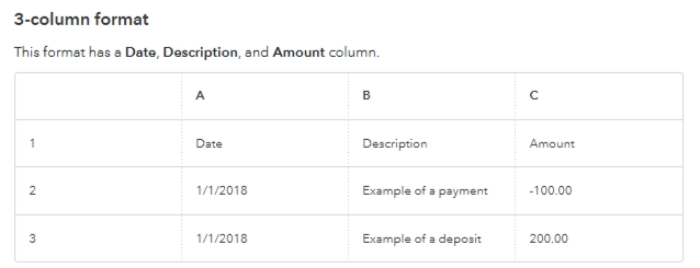 The three-column format includes Date, Description, and Amount as the column headers. Please see the image below for reference: