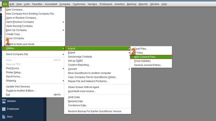 As mentioned above, QuickBooks Desktop (QBDT) only supports the Internet Explorer 11 (32-bit) browser as of now. Since you've got a message while trying importing data using our Web connect feature, there may be an issue with Web Connect. This feature issue can occur for several reasons. Sometimes, files from the bank are incomplete or in the wrong format. Changes on your bank's end can also create problems. To fix common Web Connect errors, you can start following the steps below.