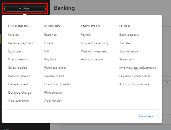 Go to Banking or Transactions on the left panel.