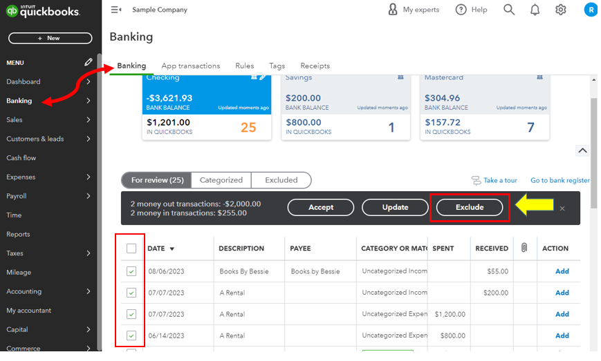 I can show you how to delete the transactions uploaded from your bank account in QuickBooks Online (QBO).
