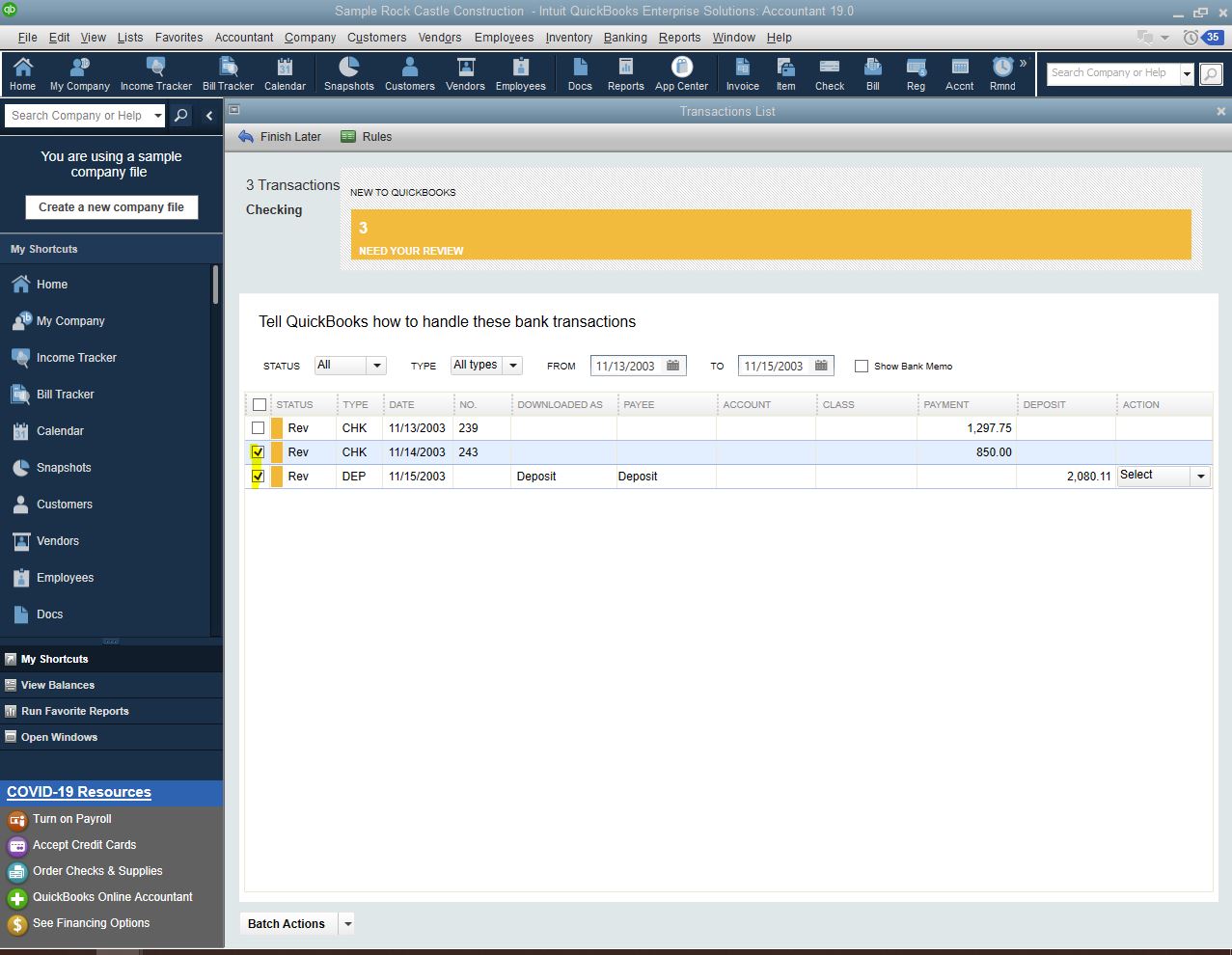 On the Banking Feed screen, I don't see any checkboxes in the Downloaded Transaction field (attached photo). Does it work differently in this version?