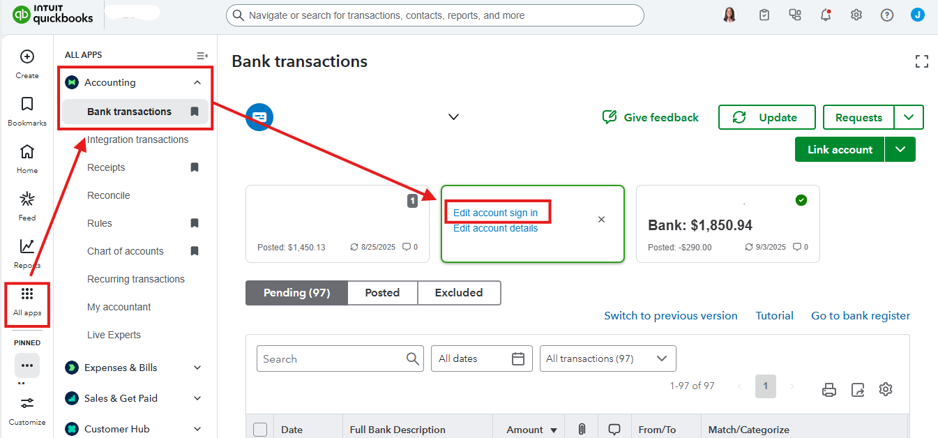 If it's still the same, let's re-enter your credentials in the Edit account sign-in option on the banking page. Here's how: