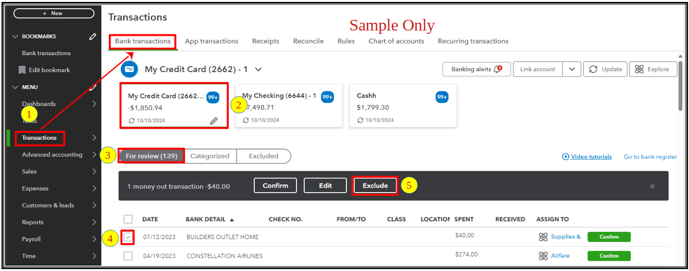 Please note that matching multiple bank transactions to a single paycheck is not possible. Instead, we'll need to exclude the bank transactions and manually clear the paycheck. Excluding these transactions will prevent them from reappearing in the bank feed, while clearing the paycheck will help ensure your QuickBooks records align with your actual bank statements.