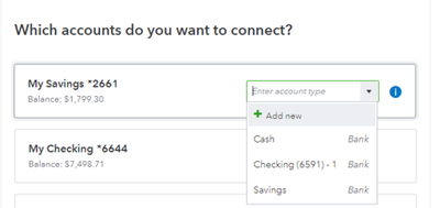 5. Después de iniciar sesión, verá una lista de sus cuentas de Bank of America. Elija el que desea vincular a QBO.