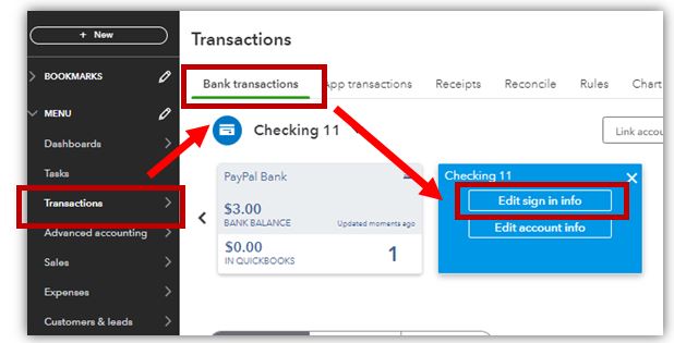 3. Update your bank information in QuickBooks. Here's how: