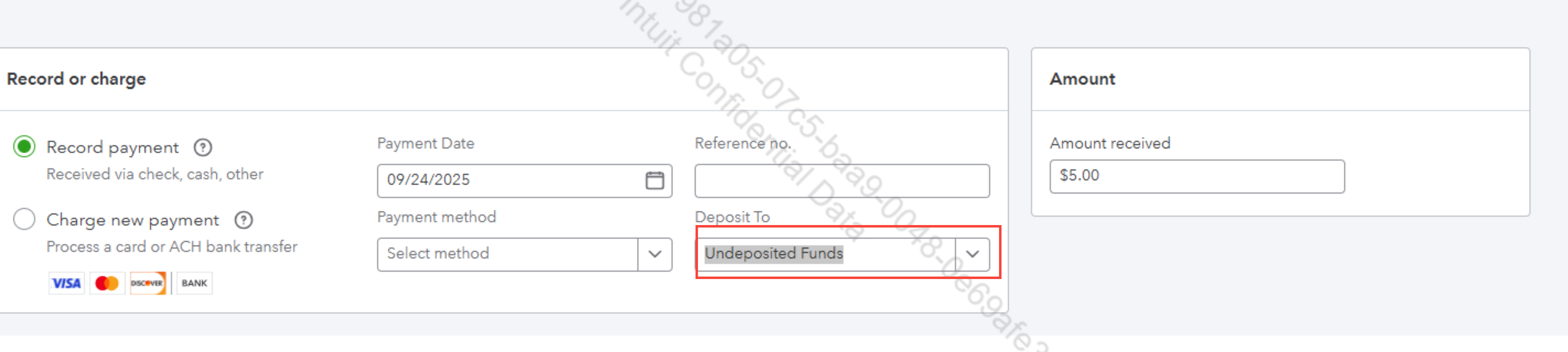 - Choose Undeposited Funds in the Deposit To dropdown.