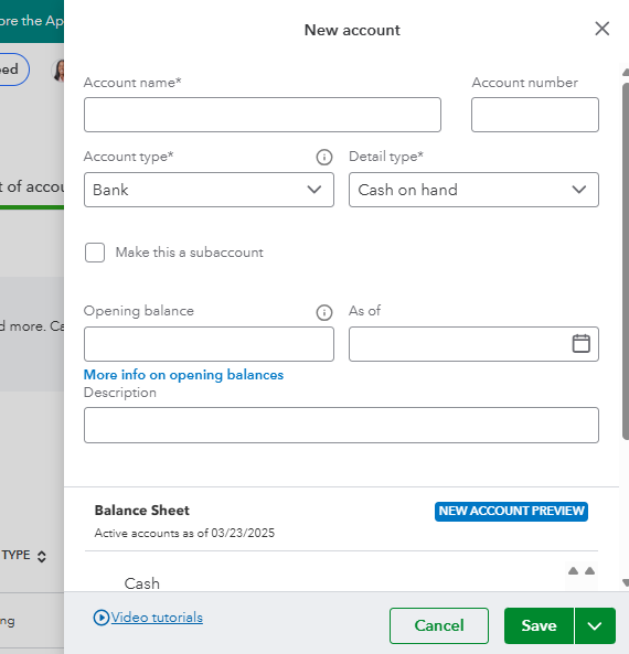 By manually uploading your transaction, you're still linking your bank to your QBO account indirectly. First, you'll need to create an Bank account in your Chart of Accounts. Here's how: