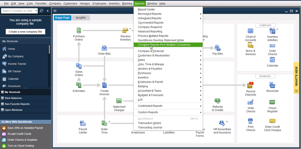 My company just elected to upgrade to QBO Advanced because the sales rep told me it was possible to consolidate our multiple companies to an umbrella company. Is this untrue?