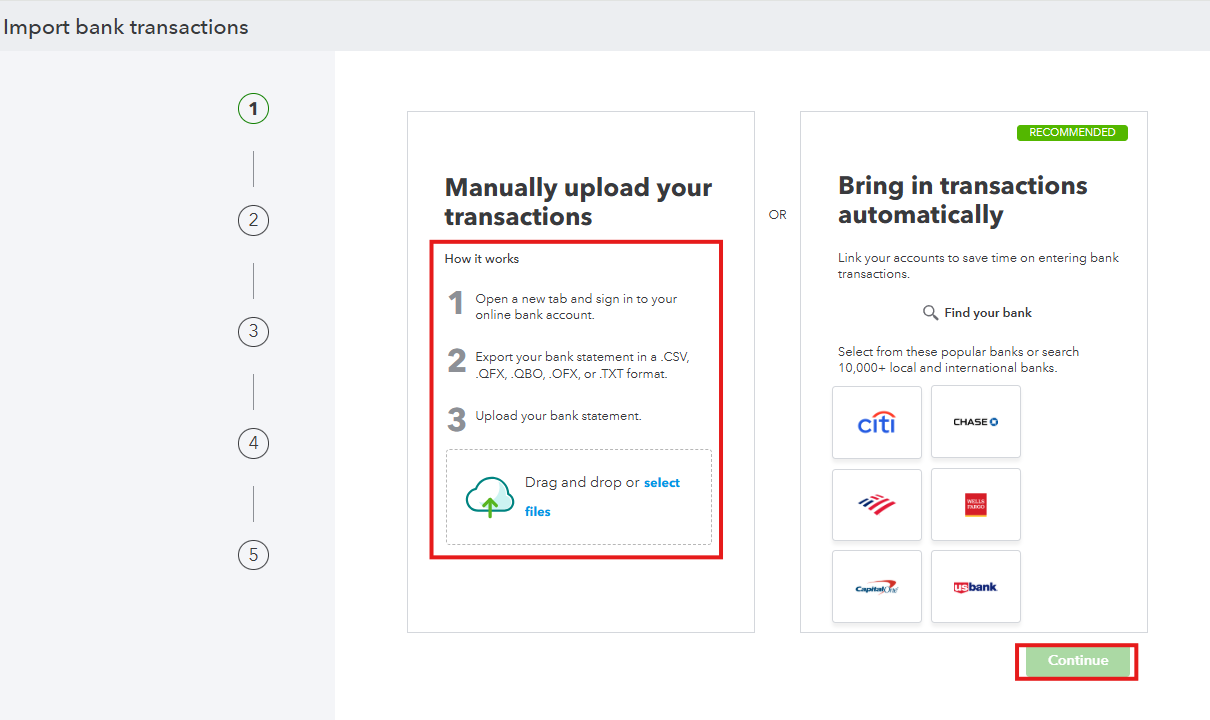 For more details about the process, open this link: Manually upload transactions into QuickBooks Online.