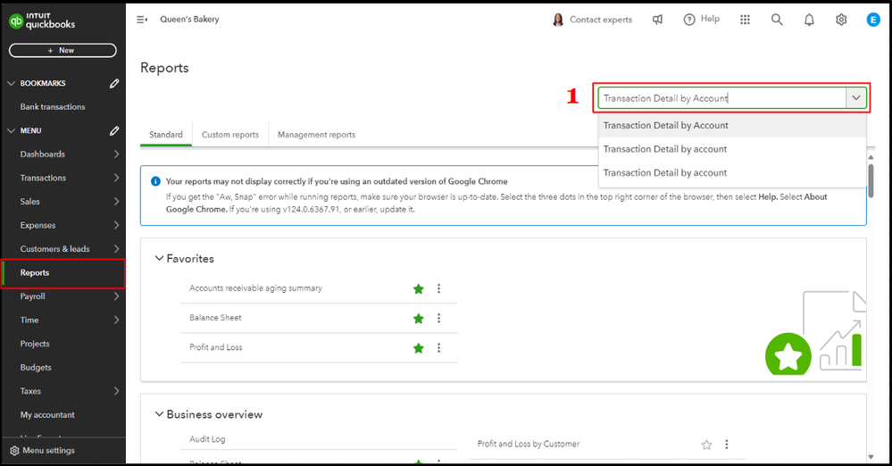 However, if you're using the Classic view, I recommend customizing the Transaction Detail by Account report. I'll guide you through the steps:
