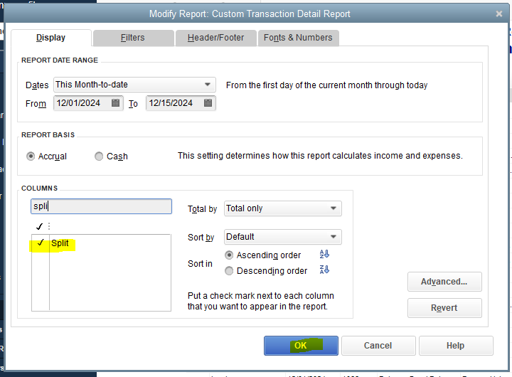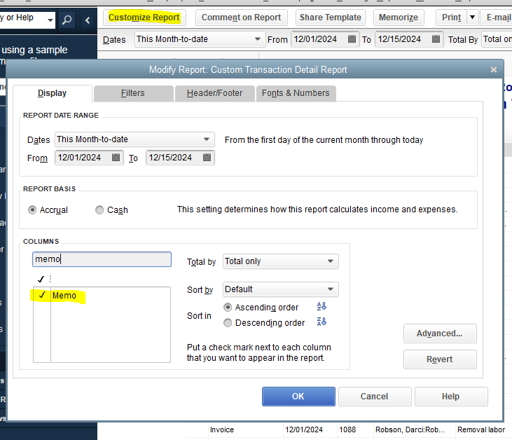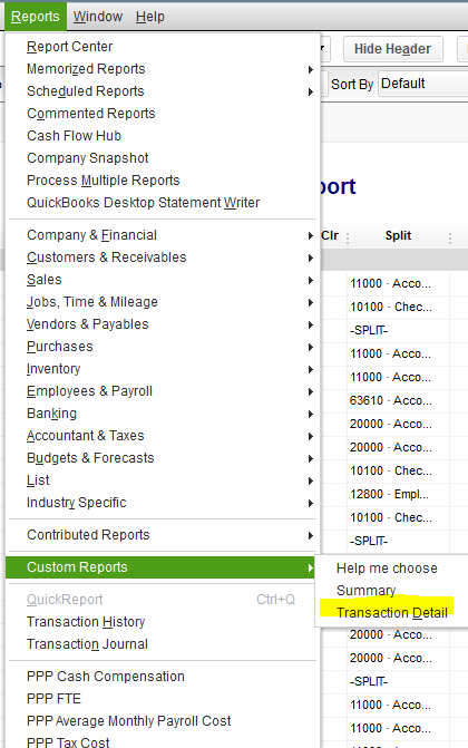 You can run the custom report to get a list of all your transactions. Then, customize it to display the memo field and the split detail. Here's how: