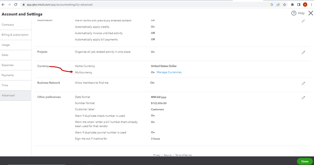 When using multicurrency with the QuickBooks API: